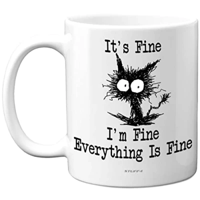 MAKE THEM GIGGLE EVERYTIME: If you are looking for birthday gifts for him or her then look no further. This exceptional quality mug bears the wording - It's Fine, I'm Fine, Everything is fine - It's bound to make them smile. Not just for a Birthday this mug could be as a valentines gifts for him or her. Gifts for men, 60th birthday gifts for women, funny gifts for women. WHAT DO YOU GET: This funny gifts for mum present is made from the highest quality mugs available on the market. An 11oz ceramic gloss finished mug with a large handle for ease of use. The cheeky design is printed on both sides so no one will miss it. Incredibly funny mens gifts for birthday from Stuff4 Ltd. 50th birthday gifts men, gifts for Dad, Mum gifts. PACKED FOR PROTECTION: Every order is packed in a drop proof double walled cardboard Mug Mailer which are lightweight and strong enough to provide total protection. So have the work colleague or your best friend in pieces and not the rude mugs. 40th birthday gifts for men, birthday gifts for mum, funny gifts for men, mens birthday gifts. MADE AND QUALITY CHECKED IN THE UK: We manufacture all our product right her in the UK so you can be sure of a fast turnaround and a product that is expertly made - silly secret santa gifts for 10 for her and him. Birthday gifts for Dad, 70th birthday gifts for women, 30th birthday gifts for men, 70th birthday gifts for men, mugs gifts for women, 50th birthday gifts for him. 11oz DISHWASHER AND MICROWAVE SAFE MUGS: Made from premium ceramic our 11oz heavyweight mugs are manufactured with a dishwasher safe premium coating. This means that the colours of your image will not fade from even after multiple cycles (up to 800) through a dishwasher. They are also microwave safe. Gifts for mum on her birthday, Dad gifts, novelty gifts for men, gifts for Grandad.