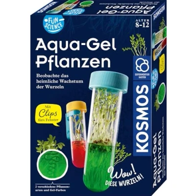 Space Research in the Nursery - Aqua Gel is the perfect soilless breeding ground for plants and is even used in research into life in space. Especially spectacular: in the green and red gel layer, children can see exactly how mung bean and cress stretch out their roots and grow diligently. The cool test tubes are attached to the window with adhesive pads without leaving any residue - so they get enough light and become an exciting research station. How can the plants survive without soil? And how do the roots grow? The instructions accompany the children during the experiments and provides exciting background knowledge. With the Kosmos experiment box, what else remains hidden in the earth becomes visible: root growth up close, with a fascinating futuristic atmosphere. For ages 8 and up., Manufacturer: Kosmos Spiele