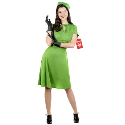 Retro dress includes a green dress with matching hat & black gloves. Available in sizes Small 4-6, Medium 8-10 , Large 12-14, X-Large 16-18, XX-Large 20-22. Please refer to size chart image for further size details. High quality material complete and comfortable for a variety of body types. Founded in 2009 by 3 friends with a passion for costumes, we now have 100's of designs all manufactured to high standards of quality, fit and design. We have offices in the US, UK and Europe. Fun Shack 1940s Dresses for Women: Vintage WW2 40s Dresses, Retro Styles, and Classic Costume Accessories. Perfect for themed events, parties, or Halloween. Embrace vintage charm with our stylish and authentic 1940s-inspired dresses. This costume provides all-day comfort: it’s made from lightweight, stretchy, breathable materials making it easy to put on, move around in and take off. Reinforced stitching ensures durability for multiple indoor and outdoor wears. Hand wash only., Manufacturer: Fun Shack