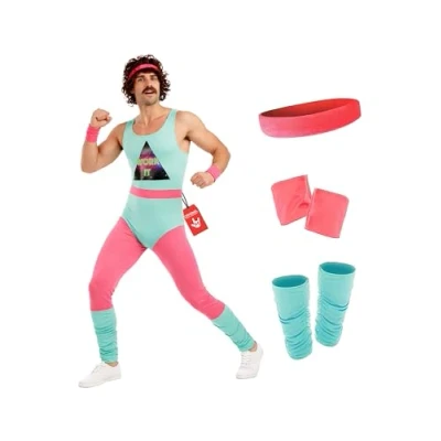 80's aerobics costume men includes a blue leotard featuring a "Work It" slogan on the front, blue leg warmers & pink leggings, headband & sweatbands. Available in sizes Medium, Large, XL. Please refer to size chart image for further size details. High quality fitness instructor fancy dress, outfit features high quality details throughout and is completed with iconic 80's retro accessories. Founded in 2009 by 3 friends with a passion for costumes, we now have 100's of designs all manufactured to high standards of quality, fit and design. We have offices in the US, UK and Europe. Fun Shack 80s Fitness Instructor Costume for men, perfect for aerobics-themed parties and events. This 80s fancy dress outfit is ideal for a vibrant, retro look. Stand out as an 80s fitness instructor with this stylish and fun costume! This costume provides all-day comfort: it’s made from lightweight, stretchy, breathable materials making it easy to put on, move around in and take off. Reinforced stitching ensures durability for multiple indoor and outdoor wears. Hand wash only., Manufacturer: Fun Shack
