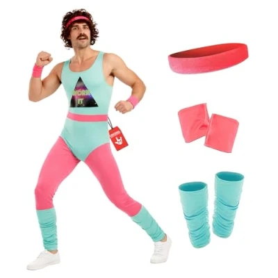 80's aerobics costume men includes a blue leotard featuring a "Work It" slogan on the front, blue leg warmers & pink leggings, headband & sweatbands. Available in sizes Medium, Large, XL. Please refer to size chart image for further size details. High quality fitness instructor fancy dress, outfit features high quality details throughout and is completed with iconic 80's retro accessories. Founded in 2009 by 3 friends with a passion for costumes, we now have 100's of designs all manufactured to high standards of quality, fit and design. We have offices in the US, UK and Europe. Fun Shack 80s Fitness Instructor Costume for men, perfect for aerobics-themed parties and events. This 80s fancy dress outfit is ideal for a vibrant, retro look. Stand out as an 80s fitness instructor with this stylish and fun costume! This costume provides all-day comfort: it’s made from lightweight, stretchy, breathable materials making it easy to put on, move around in and take off. Reinforced stitching ensures durability for multiple indoor and outdoor wears. Hand wash only., Manufacturer: Fun Shack