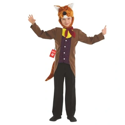 Fox costume kids is a charming woodland fox costume boys outfit featuring a brown jacket with detachable tail, checked waistcoat insert, red necktie and faux fur fox headpiece for storybook dress up Sizes Available: S (4-6 years), M (7-9 years), L (10-12 years), XL (12-14 years). Designed for comfort and flexibility, allowing easy movement and confident play. Refer to size chart for more information Perfect for Book Day, Book Week and School Play events, this fox costumes for kids design helps boys transform into a clever forest character to impress classmates and celebrate favourite tales Suitable for indoor and outdoor wear at school halls, theatres and parties, this storybook fox costume pairs brilliantly with trousers, boots and themed accessories Worn by children who love animal stories and woodland adventures, this animal book character costume is chosen by parents and teachers who want comfort, confidence and standout charm This costume provides all-day comfort: it's made from lightweight, stretchy, breathable materials making it easy to put on, move around in and take off, allowing for easy bathroom breaks. Perfect for active play, trick-or-treating, and wearing indoors or outdoors in any weather. Hand wash only, Manufacturer: Fun Shack