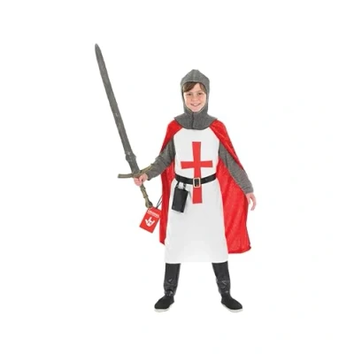 Kids knight costume includes a detailed tunic with cross emblem, belt with scabbard, flowing red cape, helmet and boot covers, creating a classic knight costume used as a brave medieval hero outfit for immersive dress up fun. Sizes Available: S (4-6 years), M (7-9 years), L (10-12 years), XL (12-14 years). Designed for comfort and movement, allowing active play and confident posing. Refer to size chart for more information. Ideal for Book Day, Tudor Day and Medieval Fairs, this boys medieval costume is perfect for children wanting to impress classmates, celebrate history and bring legendary tales to life. Suitable for indoor and outdoor wear at school halls, playgrounds and event venues, this knight costume pairs perfectly with toy swords, shields and medieval accessories for a complete look. Loved by children, history fans and young adventurers, this king arthur costume kids outfit suits parents planning themed events and little ones who want attention, authenticity and heroic confidence. This costume provides all-day comfort: it's made from lightweight, stretchy, breathable materials making it easy to put on, move around in and take off, allowing for easy bathroom breaks. Perfect for active play, trick-or-treating, and wearing indoors or outdoors in any weather. Hand wash only., Manufacturer: Fun Shack
