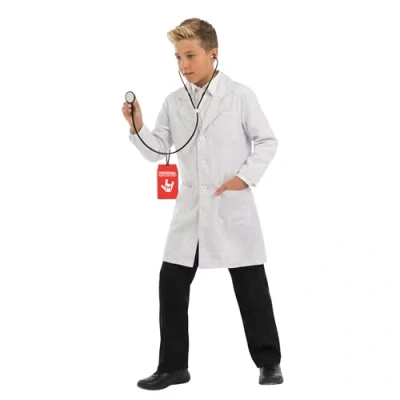 Doctor fancy dress kids includes a long white hospital coat and a black toy stethoscope. Available in sizes Small (4-6 Years), Medium (7-9 Years), Large (10-12 Years), X-Large (12-14 years). Please refer to size chart image for further size details. High quality kids doctor costume, including an iconic long white hospital coat. Founded in 2009 by 3 friends with a passion for costumes, we now have 100's of designs all manufactured to high standards of quality, fit and design. We have offices in the US, UK and Europe Perfect kids dr coat, dr coat kids, kids doctors dress up, girls doctor costume, doctors dress up for kids, boys doctors outfit, doctors costume kids, childs doctors coat, childrens doctors coat, boys doctor costume, childrens doctors outfit. This costume provides all-day comfort: it’s made from lightweight materials making it easy to put on, move around in and take off, allowing for easy bathroom breaks. Perfect for active play, trick-or-treating, and wearing indoors or outdoors in any weather. Hand wash only., Manufacturer: Fun Shack