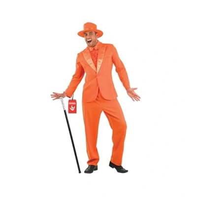 Movie halloween costume includes an orange suit jacket with attached shirt insert, matching trousers, an orange bow tie and a top hat. Available in sizes Medium, Large, XL. Please refer to size chart image for further size details. Easy to wear, durable, breathable and soft high quality halloween costume. Founded in 2009 by 3 friends with a passion for costumes, we now have 100's of designs all manufactured to high standards of quality, fit and design. We have offices in the US, UK and Europe. Fun Shack Orange Suit Halloween Costume: Perfect for 90s dress-up, this funny movie-inspired fancy dress is ideal for Halloween or retro-themed parties. Stand out with this unique 1990s costume that guarantees laughs and great memories! This costume provides all-day comfort: it’s made from breathable materials making it easy to put on, move around in and take off. Reinforced stitching ensures durability for multiple indoor and outdoor wears. Hand wash only., Manufacturer: Fun Shack