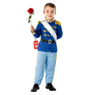 Prince charming costume kids is a royal fancy dress outfit featuring a detailed blue jacket with gold trim, sash, belt and matching trousers, designed to transform your child into a classic storybook prince. Sizes Available: S (4-6 years), M (7-9 years), L (10-12 years), XL (12-14 years) offering comfort and flexibility for active movement and school events. Refer to size chart for more information. Ideal for World Book Day, Halloween or a birthday party, this prince costume kids set is made for boys who want to dress up, perform and celebrate in traditional fairy tale style. Suitable for indoor and outdoor events, school halls and home celebrations, this fairy tale costume boys outfit pairs perfectly with crowns, toy swords, capes and themed accessories. Perfect for children who love boys prince costumes and imaginative play, it suits parents organising themed events and young fans who want confidence, attention and a regal appearance. This costume provides all-day comfort: it’s made from lightweight, stretchy, breathable materials making it easy to put on, move around in and take off, allowing for easy bathroom breaks. Perfect for active play, trick-or-treating, and wearing indoors or outdoors in any weather. Hand wash only., Manufacturer: Fun Shack
