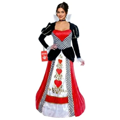 Queen of hearts adult costume includes a high-collared red white and black dress with a hooped skirt and a black choker necklace. Available in sizes Small 8-10, Medium 12-14, Large 16-18, X-Large 20-22, XX-Large 24-26. Please refer to size chart image for further size details. High quality womens queen costume, outfit features high quality details throughout and is completed with puff sleeves. Founded in 2009 by 3 friends with a passion for costumes, we now have 100's of designs all manufactured to high standards of quality, fit and design. We have offices in the US, UK and Europe. Fun Shack Queen of Hearts Costume for Women - Perfect for Halloween, parties, and dress-up. This adult queen costume features a stunning design, ideal for making a statement at any event. Embrace your inner royalty with this captivating outfit! This costume provides all-day comfort: it’s made from lightweight, stretchy, breathable materials making it easy to put on, move around in and take off. Reinforced stitching ensures durability for multiple indoor and outdoor wears. Hand wash only., Manufacturer: Fun Shack