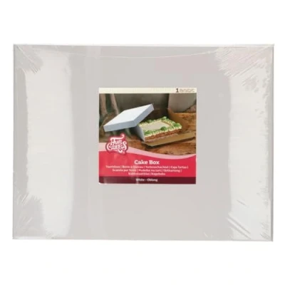 FunCakes Cake Box White Cardboard Carrier with Removable Lid and Foldable Sides Reusable Storage 60 x 50 15 cm
