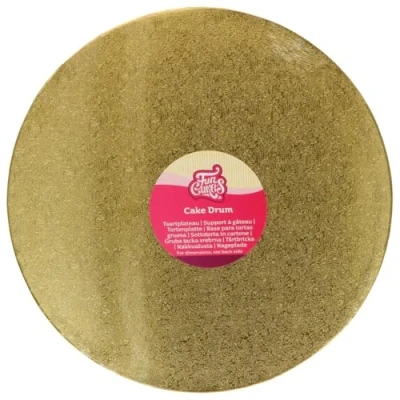 FunCakes Cake Drum Round Ø33 cm Gold: Reusable Base for Decorating and Presenting Cakes Pastries, Durable, 12 MM, 1 Piece.