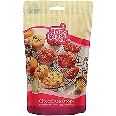 FunCakes Chocolate Drops White, Delicious Bake Stable Chips to add Cakes, Cupcakes, Muffins or Cookies, Made of Real Belgian Chocolate, Halal. 350 g.