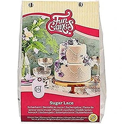 Easy to use mix for glutenfree edible lace. Simply fill a lace mould of your preference to create all kinds of decorations for cakes, cupcakes and more! Only add the mix with water to create a white lace with delicious Toffee flavour. For making edible cake lace by using cake lace mats. Can also be piped, stencilled, coloured wiht FunCakes Colour Dust and used to make edible confetti. FunCakes is specialized in ingredients and products for cake decoration. We love baking as much as you do and are always looking for professional quality baking products for home bakers. Perfect for transforming wedding cakes, cupcakes and desserts with beautiful lace pieces in an instant.