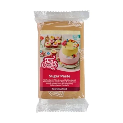 FunCakes Sugar Paste Sparkling Gold, Easy to Use, Smooth, Flexible, Soft and Pliable, for Cake Decorating, Halal, Kosher Gluten Free, 250 g