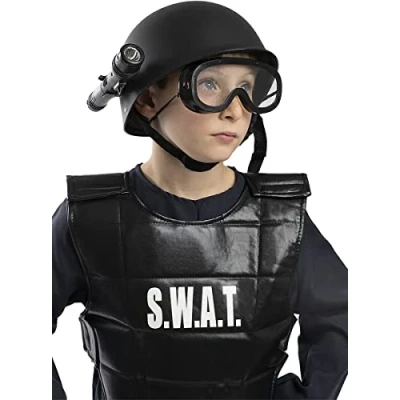 🔴 Included: Costume accessories for kids. Helmet with luminous flashlight and goggles (batteries included). Black Color. Made of 100% Plastic. NOT INCLUDED: Waistcoat 🟠 Costume accessories are the details that make the difference and mean your outfit is unique and totally customized. 🟡FUNIDELIA is the largest online costume shop in Europe. At FUNIDELIA we design our own costumes and accessories, so we can control the chain of production and ensure the highest quality at the best price for all our products. We also have collaboration agreements with some of the most important licenses in the world. 🟢Accessories SWAT different and unique for Carnaval, Halloween, themed parties or birthdays. Helmets Police officer & Agent to complement any FBI & Professions costume. 🔵 The perfect accessory for your costume: And you, what would you like to be when you grow up?. The perfect Black accessory for your costume. You can also use your POLICE SWAT HELMETS for your costume., Manufacturer: Funiglobal