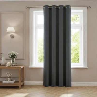 Ready Made Blackout Curtains: Funky gadgets Blackout eyelet curtains / window treatment Set includes 1 curtain panel, with 4cm inner ring diameter, easy to install on curtain poles. Thermal Insulated Curtains for Bedroom – These Black out curtains for bedroom designed with triple weave blackout fabric to block 75-85% sunlight & UV rays, perfect for privacy and sleep. Energy Saving Window Treatment – These blackout curtain & drapes help regulate indoor temperature, keeping rooms cool in Summer and warm in Winter Premium Soft Touch Fabric – Thermal lined curtains are made of 100% polyester, featuring a smooth texture, light controlling, and same color front and back for a modern look. Easy Care Eyelet Curtains – Machine washable, wrinkle-resistant, and easy to iron. Ideal curtains for living room, bedroom, nursery, or kids room.