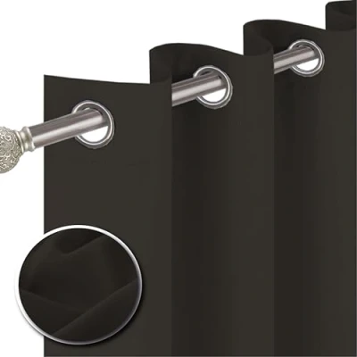 funky gadgets Blackout Curtains Super Soft Thermal Insulated Ring Top Silver Window Eyelet for Living Room Bedroom 66 x 72 Inch Dark Brown 2 Panels