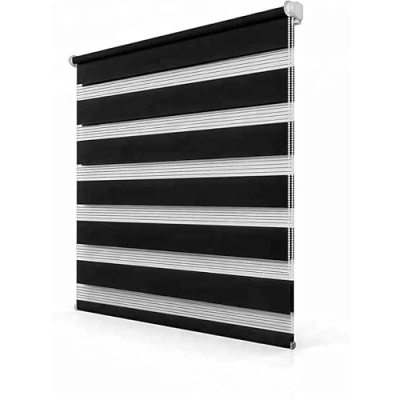 Funky Gadgets Day Night Blinds Double Layer Sheer Fabric Windows Curtains For Bedroom Easy Fit Drilling & No Opaque Shades Zebra Roller Black, 94cm W x 165cm L