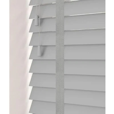 Funky Gadgets Faux Wood Blinds Wooden Window Venetian Blind 50mm Horizontal Slats with White Silver/Grey Tape Trimmable, Child Safe(Grey, W45cmxL213cm)