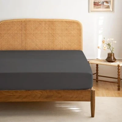 Funky Gadgets Fitted Sheet Super King Charcoal Deep Pocket 10 Inch (25cm) 90 GSM Soft Brushed Microfiber Bed Sheets Easy Care Bottom (183 X 200cm)