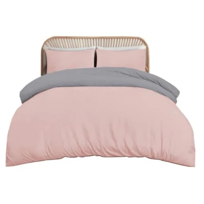 funky gadgets Single Duvet Cover Set Soft Brushed Microfiber Plain Dyed Sets with Pillow Case Reversible Bedding Quilt (Blush Pink & Grey)