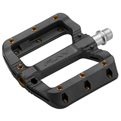Mountain bike flat pedals for downhill, enduro, urban, trail riding and dirt jumps. These plastic mtb pedals are not just perfect for MTB and gravel bike riders on challenging terrain but also nice as commuter and BMX pedals. Wide and Light Platform: Black Magic mtb flat pedals built with a large, concave platform offer improved stability and better shoe contact for maximum control in the toughest riding conditions. Black Magic plastic pedals are made of super tough fiberglass reinforced thermoplastic to create a ultralight, tough platform, ensuring they'll go the distance. Weighs just 360g. Bags of Grip: Featuring 7 removable pedal pins per side that can be easily customized or replaced according to rider preference provide the maximum grip and easy customization and maintenance! 6 colors available. Axle System : International standard 9/16 inch CrMo axle with sealed cartridge bearing and DU bushing. Durable axles make for solid long lasting mtb pedals.