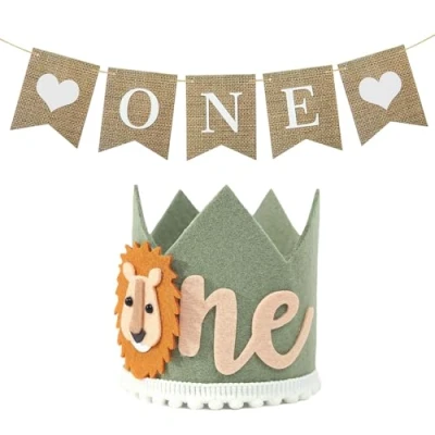 Unique Lion Design: A vibrant light green lion head with a majestic crown for celebrating the little king's first birthday Imitation Mahjong Flags: Comes with a set of eye-catching imitation Mahjong flags, adding extra fun and festive atmosphere to the celebration Durable Material: Made of high-quality materials that are safe, lightweight and comfortable for babies to wear Easy to Use: The simple design ensures that it can be easily worn on your baby's head without trouble or discomfort Versatile Decoration: Not only a choice for party accessories, but also a keepsake worth cherishing forever, Manufacturer: FunnAura