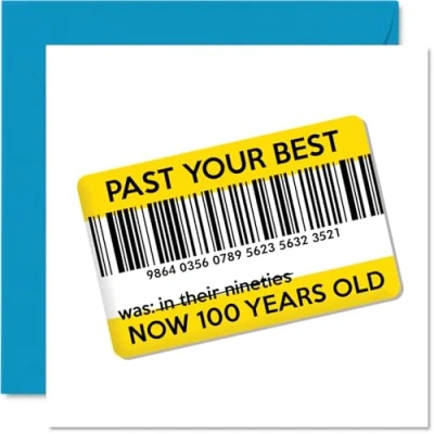 MAKE THEM LAUGH WITH THIS HILARIOUS BIRTHDAY CARD: This exceptional quality birthday card for Them shows a design of a scannable barcode with the text: Past Your Best Now 100 Years Old. If you are looking for a beautiful birthday card for them, then this happy birthday card is bound to make them smile. Not just a birthday card for neighbour this could also be a Bday card for colleagues. WHAT DO YOU GET: The card is printed on one side and BLANK ON THE INSIDE to allow you to write your very own message. The unique fun design is printed on a specially sourced and environmentally responsible board. At 360 microns thick the natural white one-sided gloss board has a quality look and feel. Supplied with a coloured gummed envelope to complement the design and ready to be sealed and sent in the post. NO INK SMUDGES: There is nothing worse than writing inside a card to find that the shiny surface makes the ink smudge. This is why we use a high quality one sided coated board. The uncoated side will absorb more of the ink from your pen to make smudging a thing of the past. Bday cards, Birthday cards from Colleague. SIZES: Greeting Card = 145mm x 145mm, Envelope = 155mm x 155mm, Card Thickness = 360 micron. Happy Birthday cards, employee Birthday card, family cards Birthday, Birthday card colleague, happy Bday neighbour from Friends gifts, happy Birthday cousin card, Bday cards friend, friend gifts from Colleague. MADE AND QUALITY CHECKED IN THE UK: We print and manufacture all our product right her in the UK so you can be sure of a fast turnaround and a product that is expertly made. Using environmentally responsible premium board our card is conscious of the responsible management of the worlds forests - happy birthday card uncle, rude birthday cards.