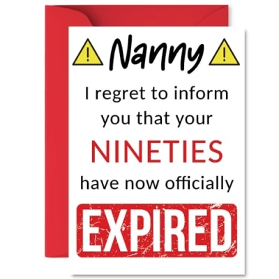 Funny 100th Birthday Cards for Nanny Your Nineties Have Expired Happy Card Nan from Grandson Granddaughter, A5 Banter Joke Humour Bday Greeting Gift