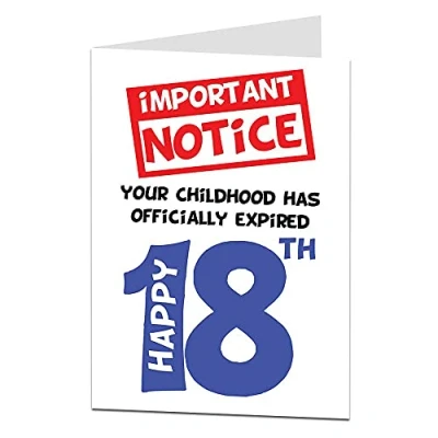 QUALITY - Professionally printed on thick 300 gsm card with a matt finish SIZE - A5 (When Folded) lots of space to add your own personal greeting ENVELOPE - (Included) high quality, with the colour matching the card design & occasion PACKAGING - Packed in a cellobag. PROFESSIONALLY PRINTED - Funny 18th Birthday Card Your Childhood Has Expired