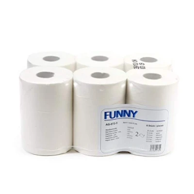 Funny 2 Ply Hand Towel Roll with Special 5 cm Core, for Generic Dispensers, Brilliant White, 21.3 cm, Approx. 100 m (Pack of 6)