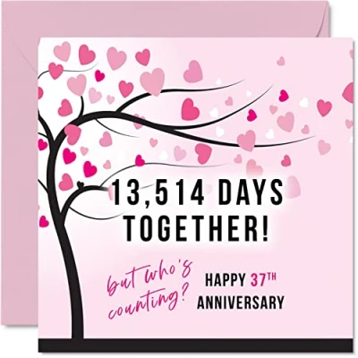 Funny 37th Anniversary Card for Wife or Husband 13514 Days Together I Love You Gifts, Happy Wedding Cards Partner, 145mm x Greeting Thirty Seventh Anniversaries
