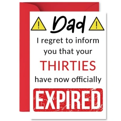 Funny 40th Birthday Cards for Dad Your Thirties Have Expired Happy Card Daddy Papa from Son Daughter, A5 Banter Joke Humour Bday Greeting Gift