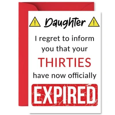 Funny 40th Birthday Cards for Daughter Your Thirties Have Expired Happy Card from Mum Dad Parents, A5 Banter Joke Humour Bday Greeting Gift