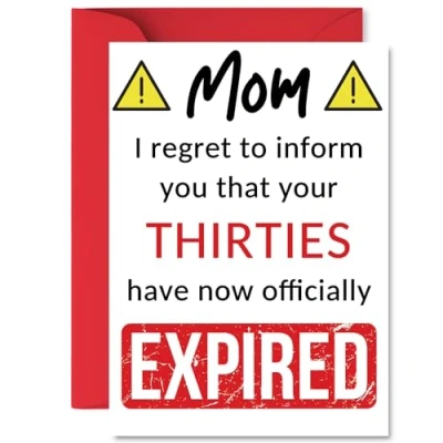 Funny 40th Birthday Cards for Mom Your Thirties Have Expired Happy Card Mommy Mama from Son Daughter, A5 Banter Joke Humour Bday Greeting Gift