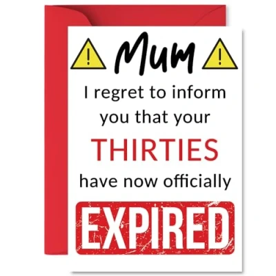 Funny 40th Birthday Cards for Mum Your Thirties Have Expired Happy Card Mummy Mom Mama from Son Daughter, A5 Banter Joke Humour Bday Greeting Gift