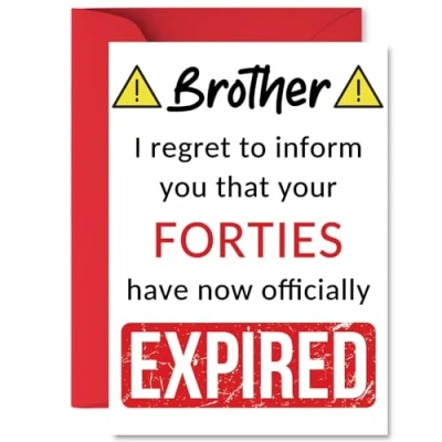 Funny 50th Birthday Cards for Brother Your Forties Have Expired Happy Card from Sister Step Sibling, A5 Banter Joke Humour Bday Greeting Gift