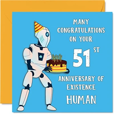 Funny 51st Birthday Cards for Men Woman Robot Droid Happy Card Dad Mum Grandad Nanny Grandma Uncle Auntie Cousin Friend, 145mm x Joke Humour Banter Greeting