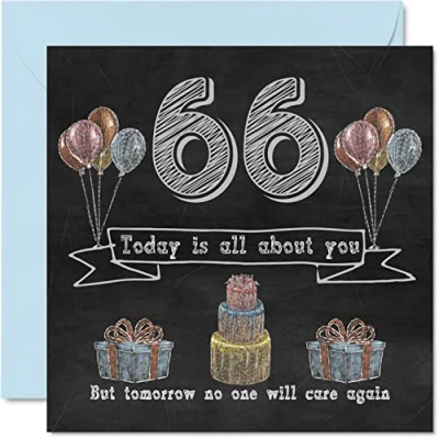 Funny 66th Birthday Cards for Men Woman Chalk Blackboard Happy Card Auntie Mum Dad Nanny Grandad Gran Uncle Grandma Cousin, 145mm x Humour Banter Greeting