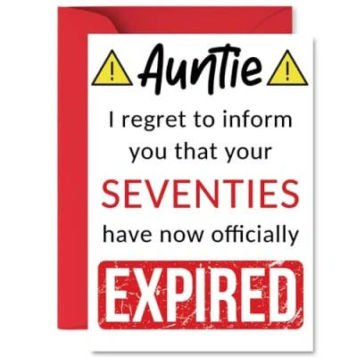 Funny 80th Birthday Cards for Auntie Your Seventies Have Expired Happy Card Aunt Aunty from Nephew Niece, A5 Banter Joke Humour Bday Greeting Gift