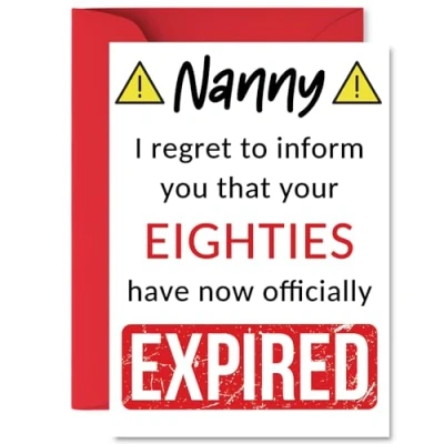 Funny 90th Birthday Cards for Nanny Your Eighties Have Expired Happy Card Nan from Grandson Granddaughter, A5 Banter Joke Humour Bday Greeting Gift