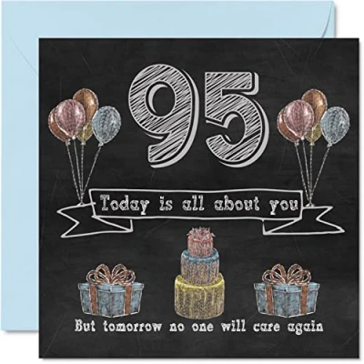 Funny 95th Birthday Cards for Men Woman Chalk Blackboard Happy Card Dad Grandpa Great Grandad Grandma Nanny Gran Granny Nan Mum, 145mm x Humour Banter Greeting