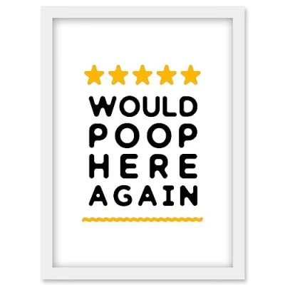 Funny Bathroom Review Sign Five Stars Would Poop Here Again Toilet Decor Artwork Framed Wall Art Print A4