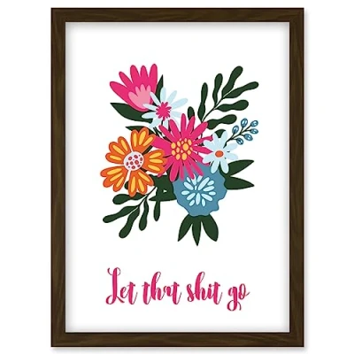 Funny Bathroom Wall Art Floral Let That Shit Go Toilet Sign Yoga Room Decor Artwork Framed Print A4