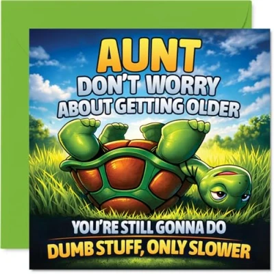 Funny Birthday Card for Aunt Still Full of Fun Cheeky Turtle Illustration with a Playful Message about Getting Older 145mm Square, Envelope Included