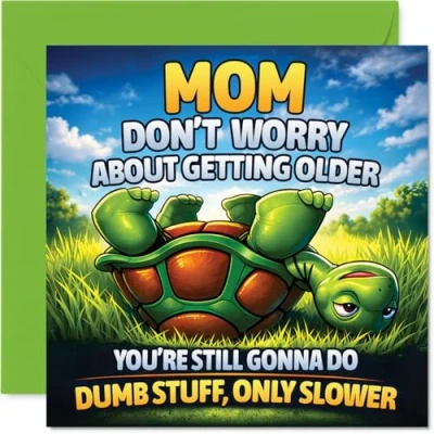 Funny Birthday Card for Mom Getting Older? No Worries Cheeky Turtle and Playful Age Joke Bright Colours Witty Charm 145mm Square, Envelope Included