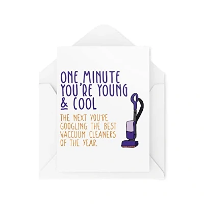 Funny Birthday Cards Banter Joke Card For Him Her Friends One Minute You're Cool & Young Best Vacuum Cleaners Old Jokes CBH832