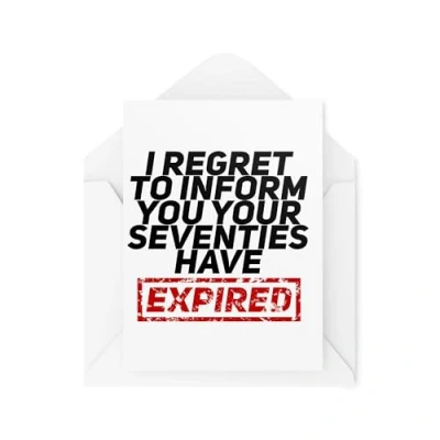Funny Birthday Cards for Friends and Family I Regret to Inform You Your Seventies Have Expired 80th Card CBH2029
