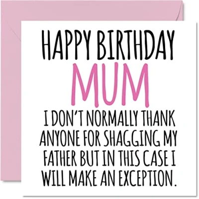 Funny Birthday Cards for Her Happy Mum Thanks Shagging Dad Offensive Rude Card from Son Daughter, 145mm x Banter Joke Humour Greeting Gift Mother Mom Mama