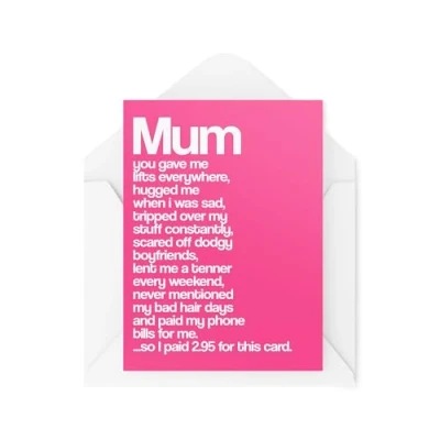 Funny Birthday Cards for Mums Mothers Day You Gave Me Lifts Everywhere Hugged When I Was Sad CBH1972