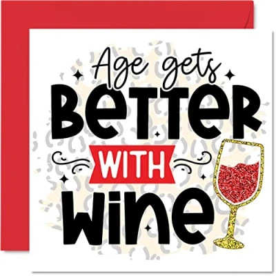 Funny Birthday Cards for Women Men Better With Wine Humour Card Dad Mum Sister Brother Son Daughter Nan Grandad, 145mm x Greeting Cards, Joke 30th 40th 50th 60th Bday