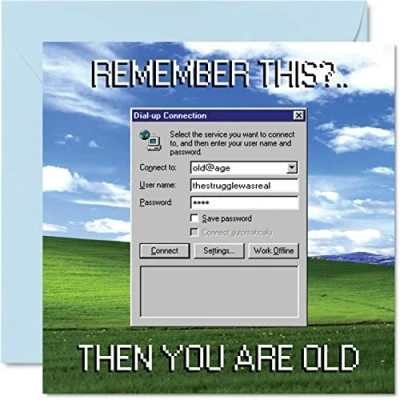 Funny Birthday Cards for Women Men Dialup Internet Struggle Happy Card Mum Dad Brother Sister Son Daughter Nan Grandad, 145mm x Joke Humour Banter Bday Greeting
